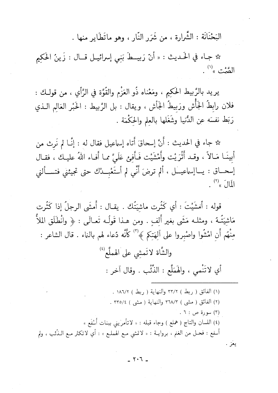 2 الفائق: "مشى": 368/ 3, والنهاية: "مشى": 335/ 4.