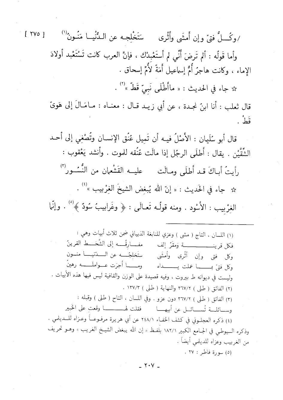 وذكره السيوطي في: الجامع الكبير: 182/ 1, بلفظ: "إن الله يبغض الشيخ الغريب", وهو تحريف من الغربيب, وعزاه للديلمى أيضا.