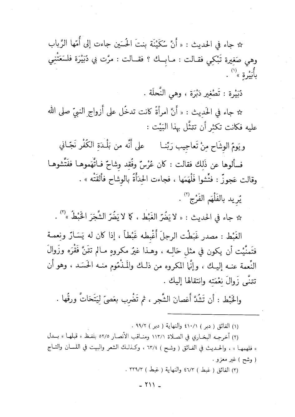 1 الفائق: "دبر": 410/ 1, والنهاية: "دبر": 99/ 2.