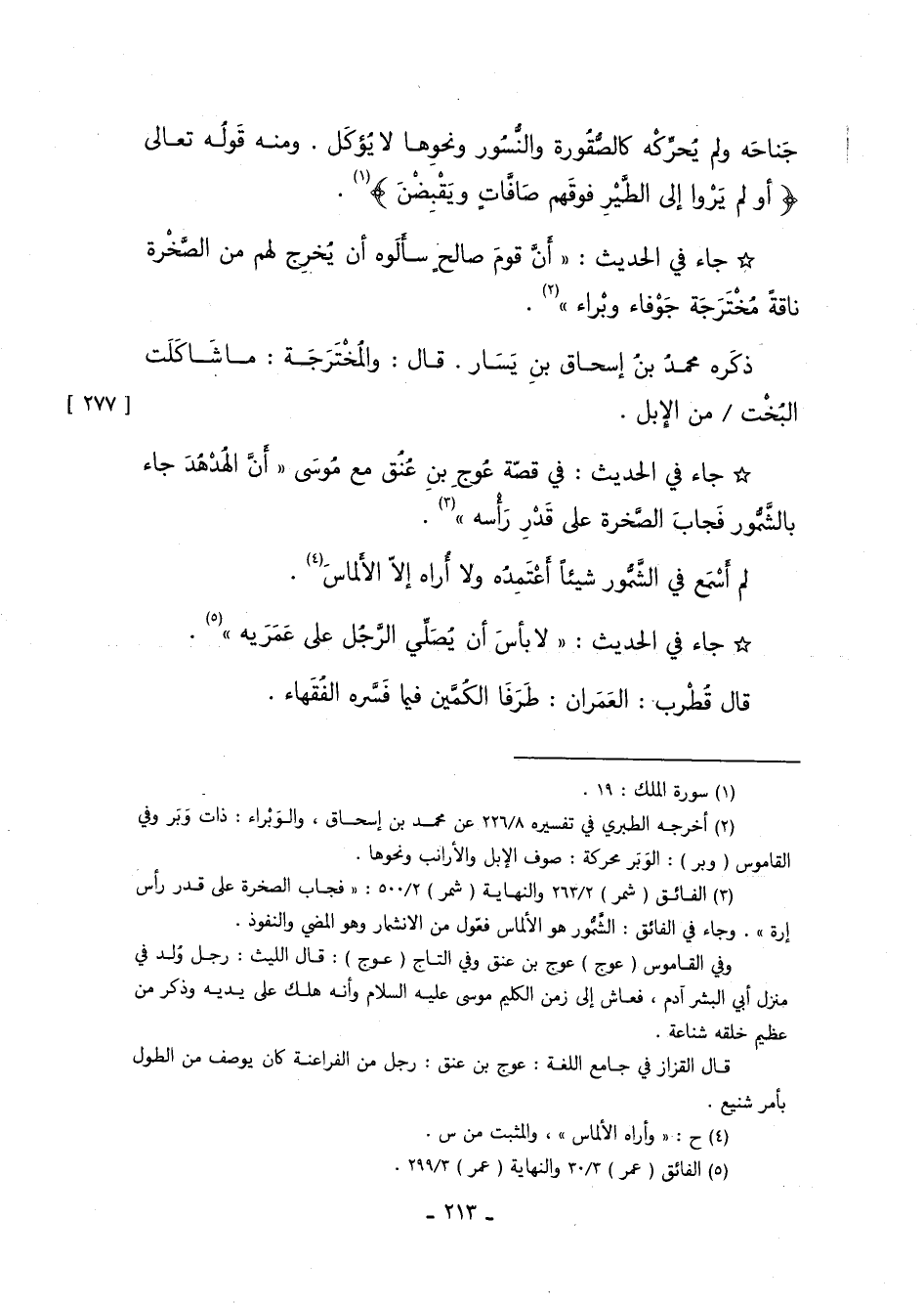 وفي: القاموس: "عوج" عوج بن عنق وفي التاج: "عوج": قال الليث: رجل ولد في منزل أبي البشر آدم، فعاش إلى زمن الكليم موسى عليه السلام, وأنه هلك على يديه, وذكر من عظيم خلقه شناعة.