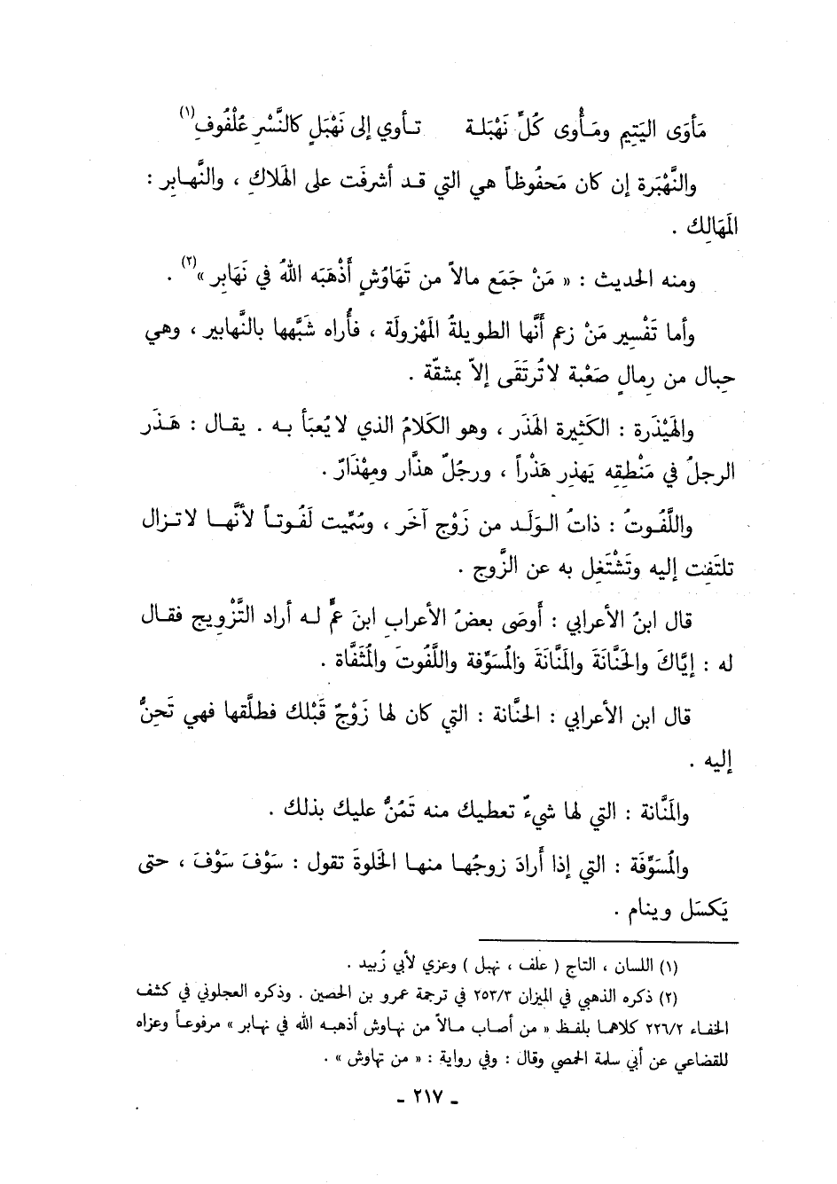 1 اللسان، التاج: "علف، نهبل", وعزي لأبي زبيد.