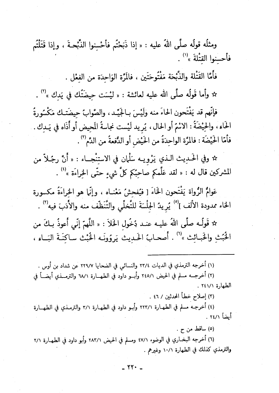 6 أخرجه البخاري في: الوضوء: 47/ 1 ومسلم في: الحيض: 283/ 1, وأبو داود في: الطهارة: 2/ 1, والترمذي كذلك في: الطهارة: 10/ 1, وغيرهم.