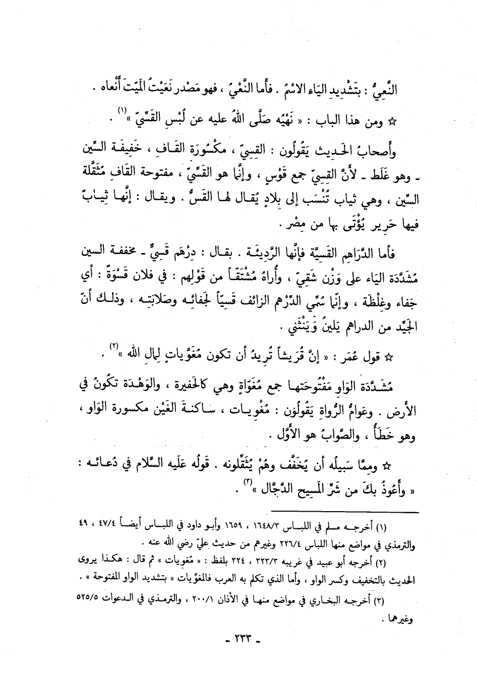 * ومن هذا الباب: "نهيه صَلَّى اللَّهُ عَلَيْهِ وَسَلَّمَ عن لبس القَسِّيِّ"1.