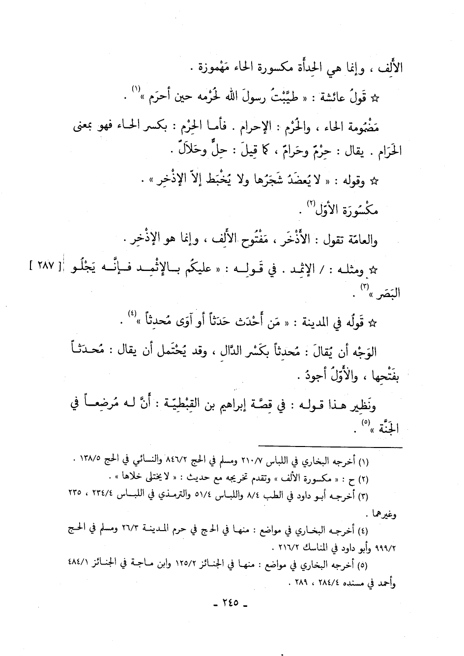 1 أخرجه البخاري في: اللباس: 210/ 7, ومسلم في: الحج: 846/ 2, والنسائي في: الحج: 138/ 5. 2 ح: "مكسورة الألف",