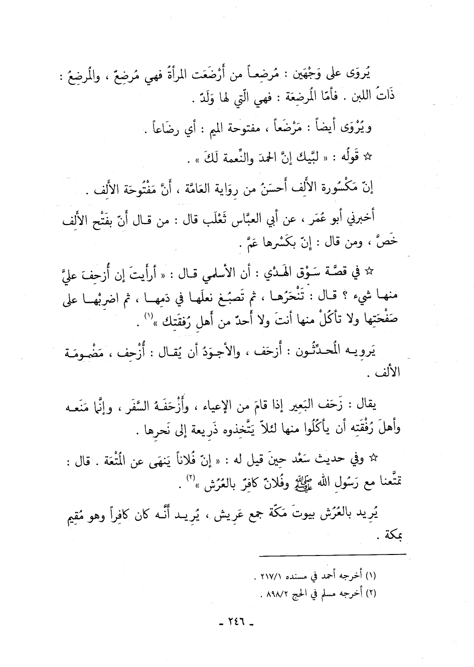 يروى على وجهين: مرضِعًا: من أرضعت المرأة, فهي مرضع، والمرضِع: ذات اللبن, فأما المُرْضِعَة: فهي التى لها ولد.