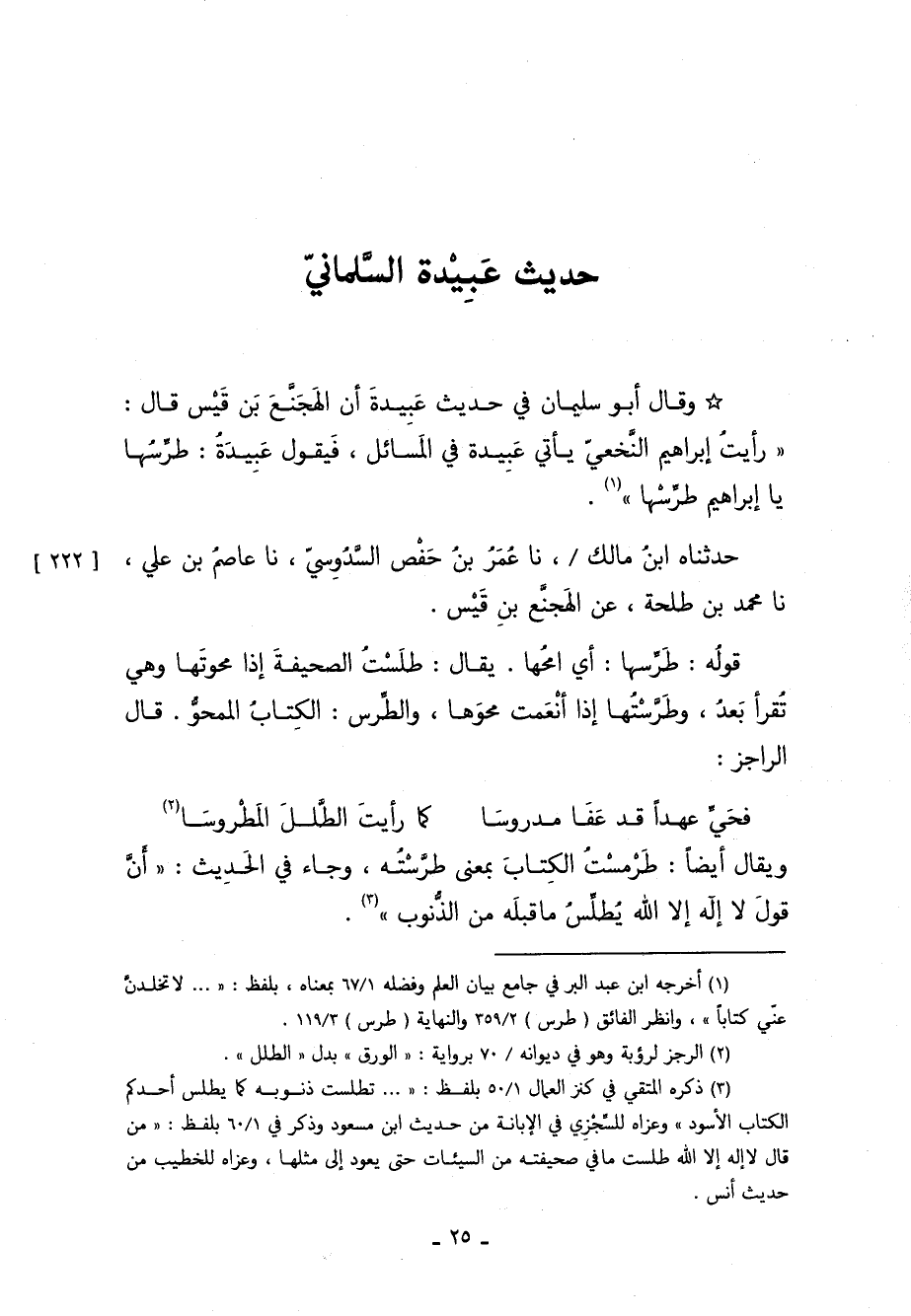 حديث عبيدة أنه كان يقول للنخعي: طَرِّسْهَا يا إبراهيم, طَرِّسْها"
