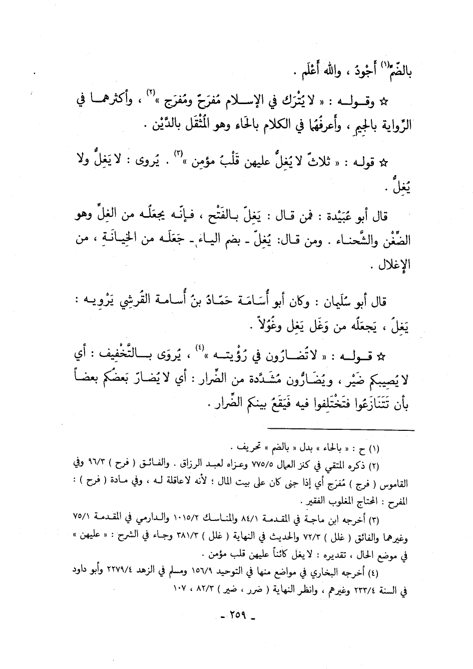 * وقوله: "لا يترك في الإسلام مُفرَح ومُفرَج" 2، وأكثرهما في الرواية بالجيم، وأعرفهما في الكلام بالحاء, وهو المثقل بالدين.