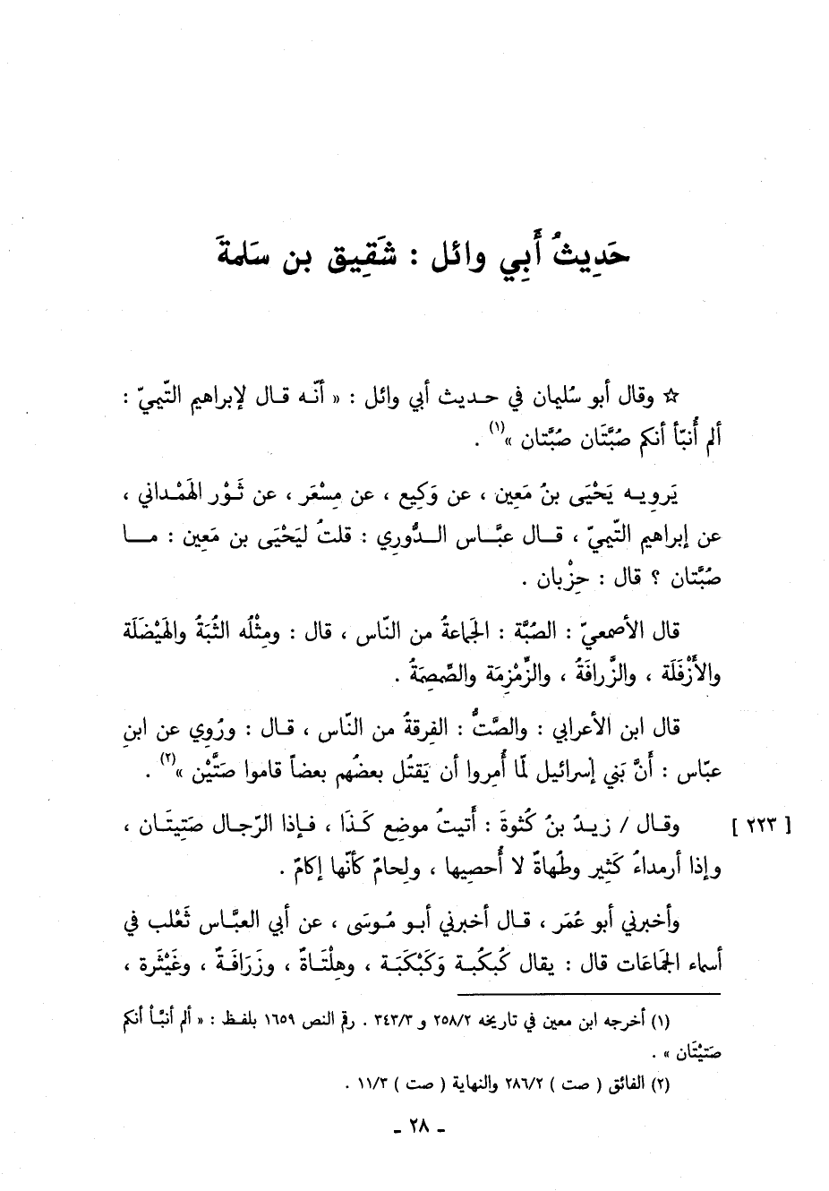 1 أخرجه ابن معين في: تاريخه: "258/ 2", و"343/ 3". رقم النص: 1659, بلفظ: "ألم أنبأ أنكم صَتيْتَان".