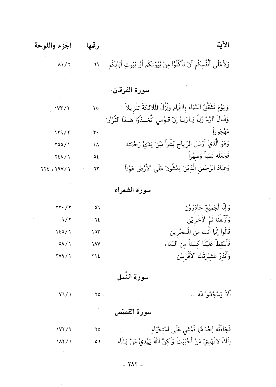 الآية رقمها الجزء واللوحة