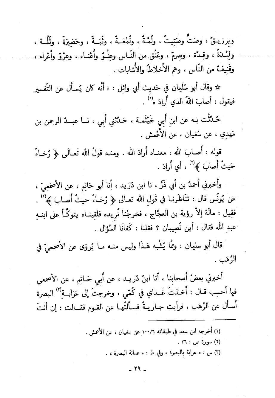 *وَقَالَ أَبُو سُلَيْمَانَ فِي حَدِيثِ أبي وائل: "أنه كان يسأل عن التفسير, فيقول: أصاب الله الذي أراد"1. حُدِّثت بِهِ عَنِ ابْنِ أَبِي خيثمة، حدثني أبي، نا عَبْدُ الرَّحْمَنِ بْنُ مَهْدِيِّ، عن سفيان، عن الأعمش.