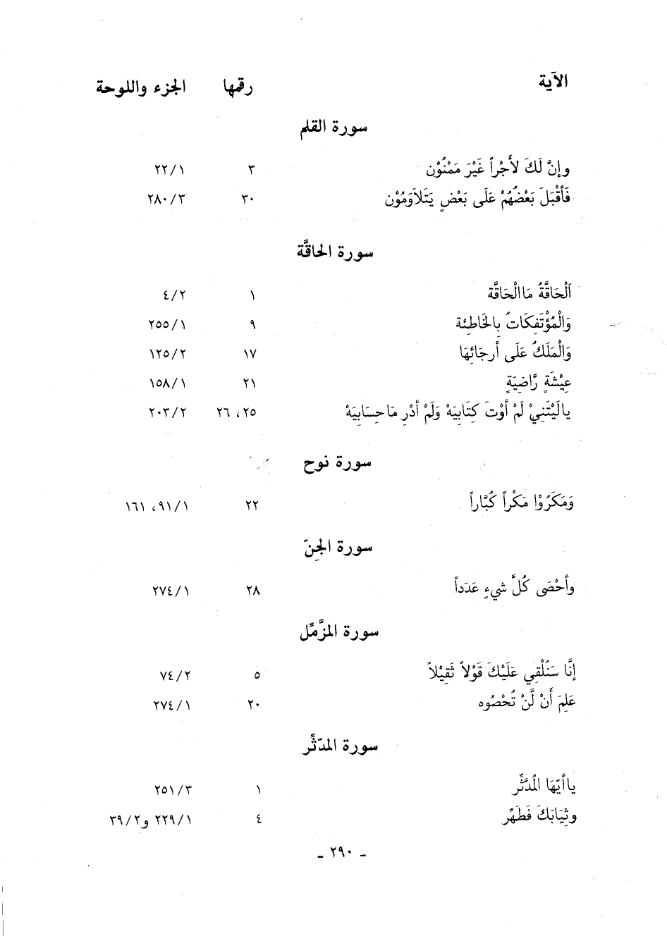 الآية رقمها الجزء واللوحة