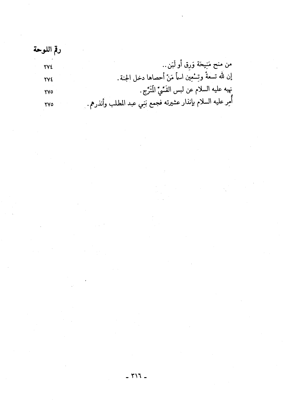 إن الله تِسْعَةً وَتِسْعِينَ اسْمًا مَنْ أَحْصَاهَا دخل الجنة. 274