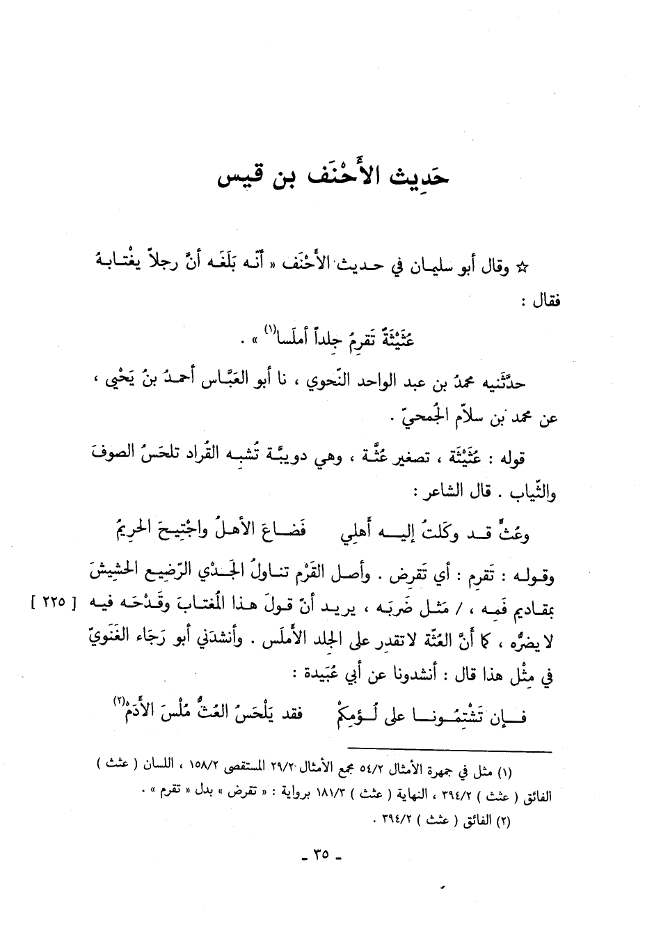 حديث الأحنف: أنه بلغه أن رجلًا يغتابه, فقال: "عُثَيثة تقرم جلدًا أملسا"