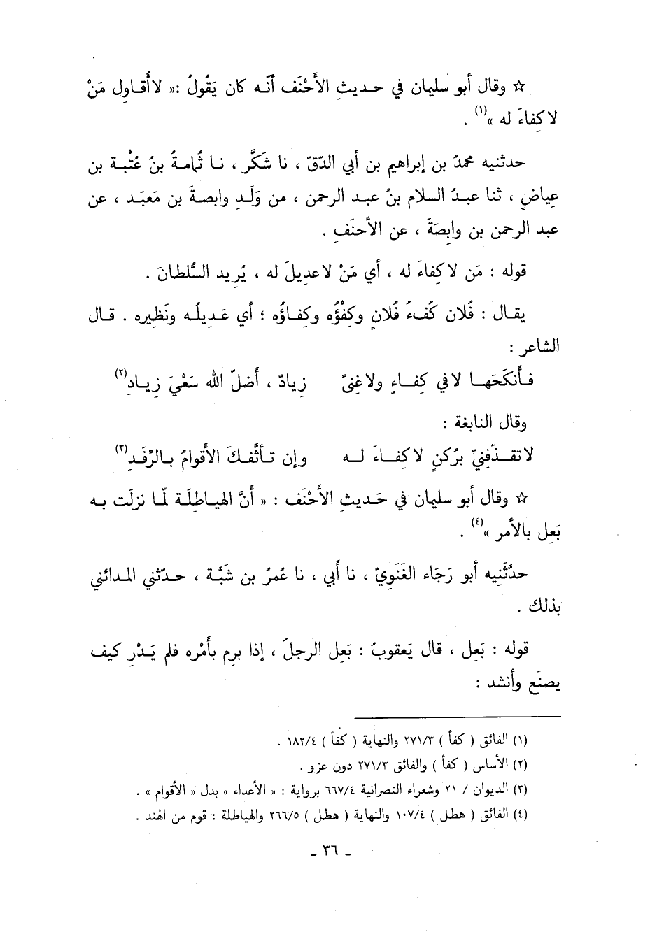 *وَقَالَ أَبُو سُلَيْمَانَ فِي حَدِيثِ الأحنف أنه كان يقول: "لا أُقَاوِلُ من لا كفاء له"1.