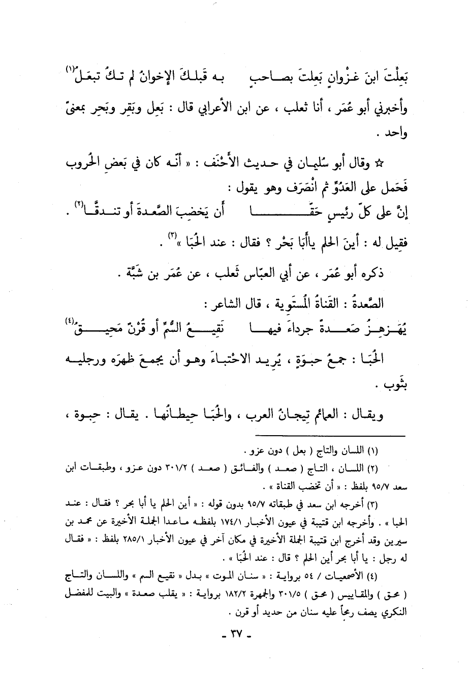 1 اللسان، التاج: "صعد", والفائق: "صعد": 301/ 2, دون عزو، وطبقات ابن سعد: 95/ 7, بلفظ: "أن تخضب القناة".