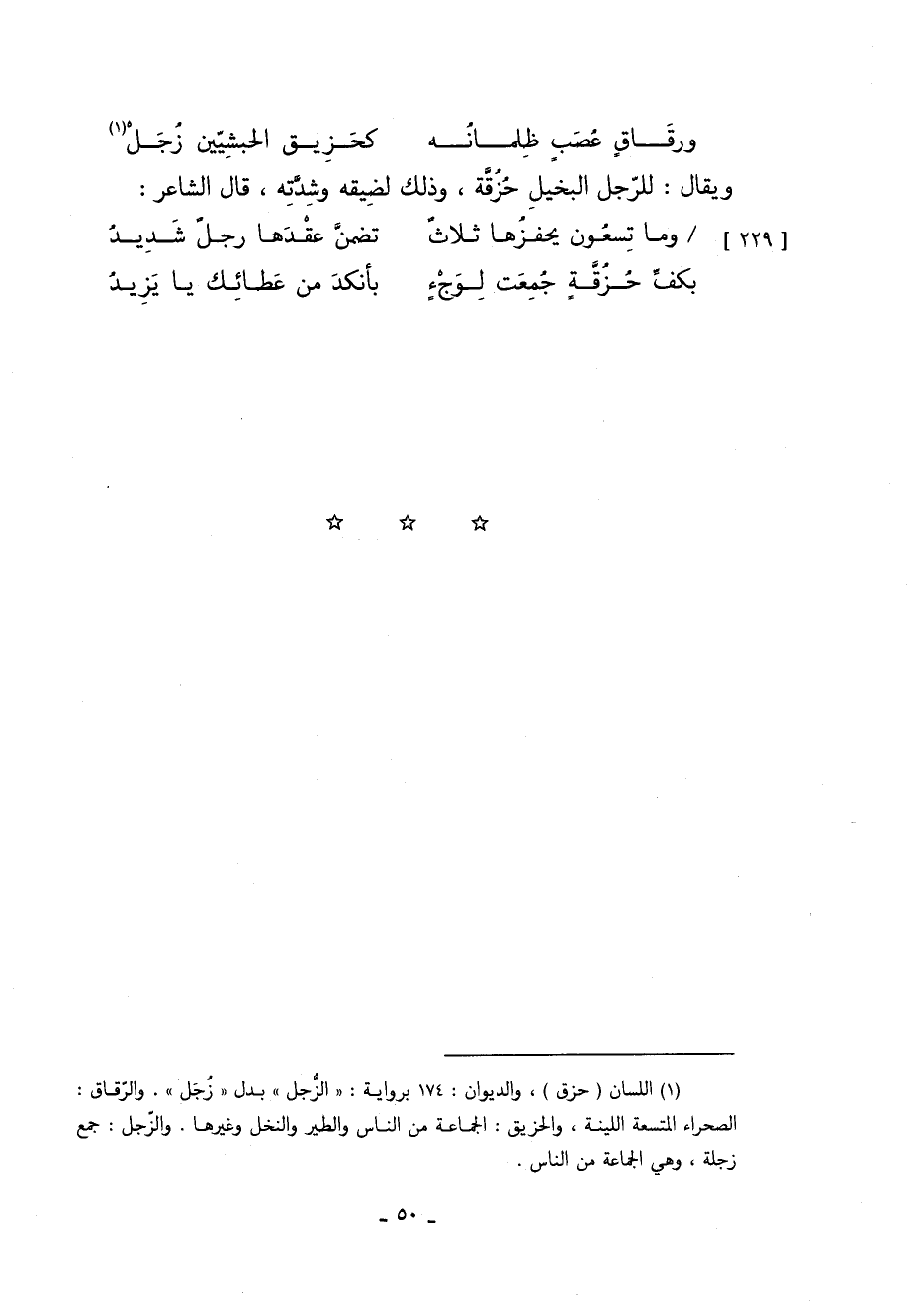 1 اللسان: "حزق"، والديوان: 174, برواية: "الزُّجل" بدل "زُجل", والرقاق: الصحراء المتسعة اللينة، والحزيق: الجماعة من الناس والطير والنخل وغيرها, والزجل: جمع زجلة، وهي الجماعة من الناس.
