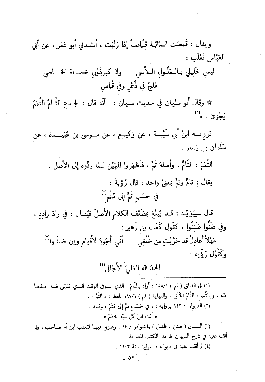 1 في الفائق: "تمم": 155/ 1: أراد بالتام، الذي استوفى الوقت الذي يُسَمَّى فيه جَذَعًا كله، وبالتمم، التام الخلق، والنهاية: "تمم": 197/ 1, بلفظ: "التمِّ".