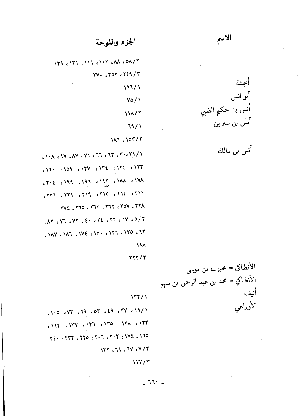 الأوزاعي 19/ 1، 37، 49، 53، 69، 73، 105، 122، 128، 135، 136، 137، 163، 165، 174، 202، 206، 225، 232، 240 7/ 2، 67، 69، 132 227/ 3