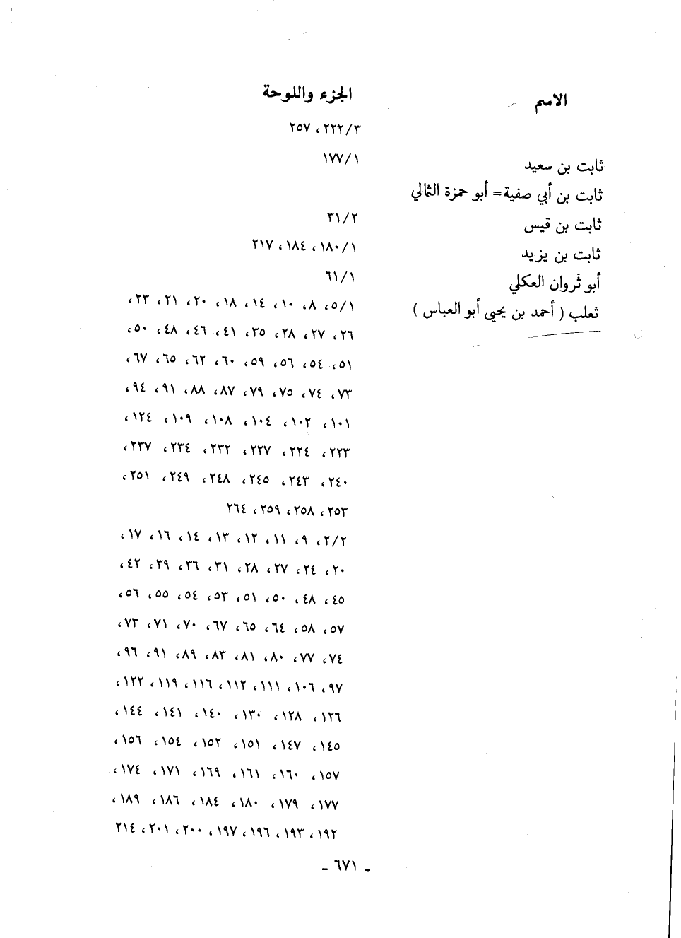 ثعلب "أحمد بن يحيى أبو العباس" 5/ 1، 8، 10، 14، 18، 20، 21، 23، 26، 27، 28، 35، 46، 48، 50، 51، 54، 56، 59، 60، 62، 65، 67، 73، 74، 75، 79، 87، 88، 91، 94، 101، 102، 104، 108، 109، 124، 223، 224، 227، 232، 234، 237، 240، 243، 245، 248، 249، 251، 253، 258، 259، 264 2/ 2، 9، 11، 12، 13، 14، 16، 17، 20، 24، 27، 28، 31، 36، 39، 42، 45، 48، 50، 51، 53، 54، 55، 56، 57، 58، 64، 65، 67، 70، 71، 73، 74، 77، 80، 81، 83، 89، 91، 96، 97، 106، 111، 112، 116، 119، 122، 126، 128، 130، 140، 141، 144، 145، 147، 151، 152، 154، 156، 157، 160، 161، 169، 171، 174، 177، 179، 180، 184، 186، 189، 192، 193، 196، 197، 200، 201، 214