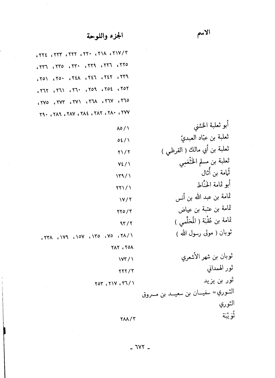 ثوبان "مولى رسول الله" 28/ 1، 75، 135، 157، 179، 238، 258، 282