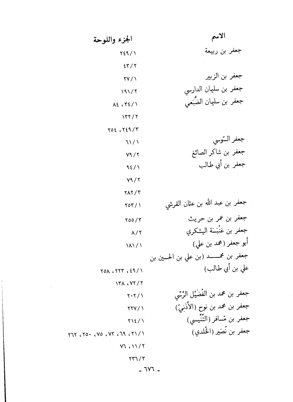جعفر بن محمد "بن علي بن الْحُسَيْنَ بْنَ عَلِيِّ بْنِ أَبِي طالب" 49/ 1، 223، 258 72/ 2، 138