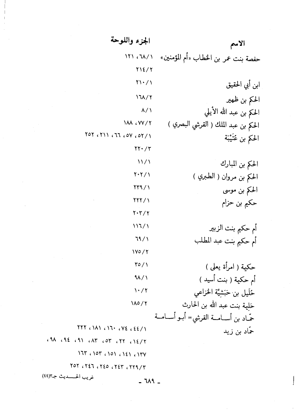 حماد بن زيد 44/ 1، 74، 160، 181، 222 14/ 2، 22، 53، 83، 91، 94، 98، 137، 141، 151، 153، 163 229/ 3، 243، 245، 246، 252