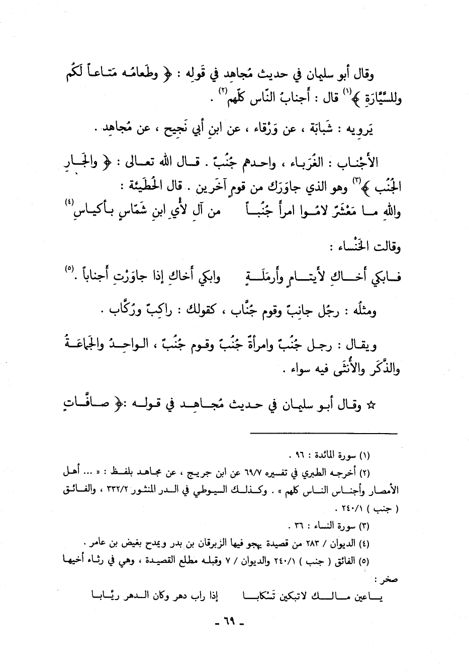 2 أخرجه الطبري في: تفسيره: 69/ 7, عن ابن جريج، عن مجاهد, بلفظ: " ... أهل الأمطار وأجناس الناس كلهم", وكذلك السيوطي في: الدر المنثور: 332/ 2، والفائق: "جنب": 240/ 1.