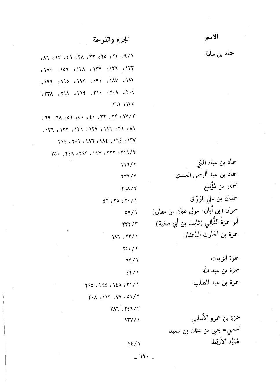 حمزة بن عبد المطلب 31/ 1، 145، 244، 245 59/ 2، 77، 113، 208 246/ 3، 286