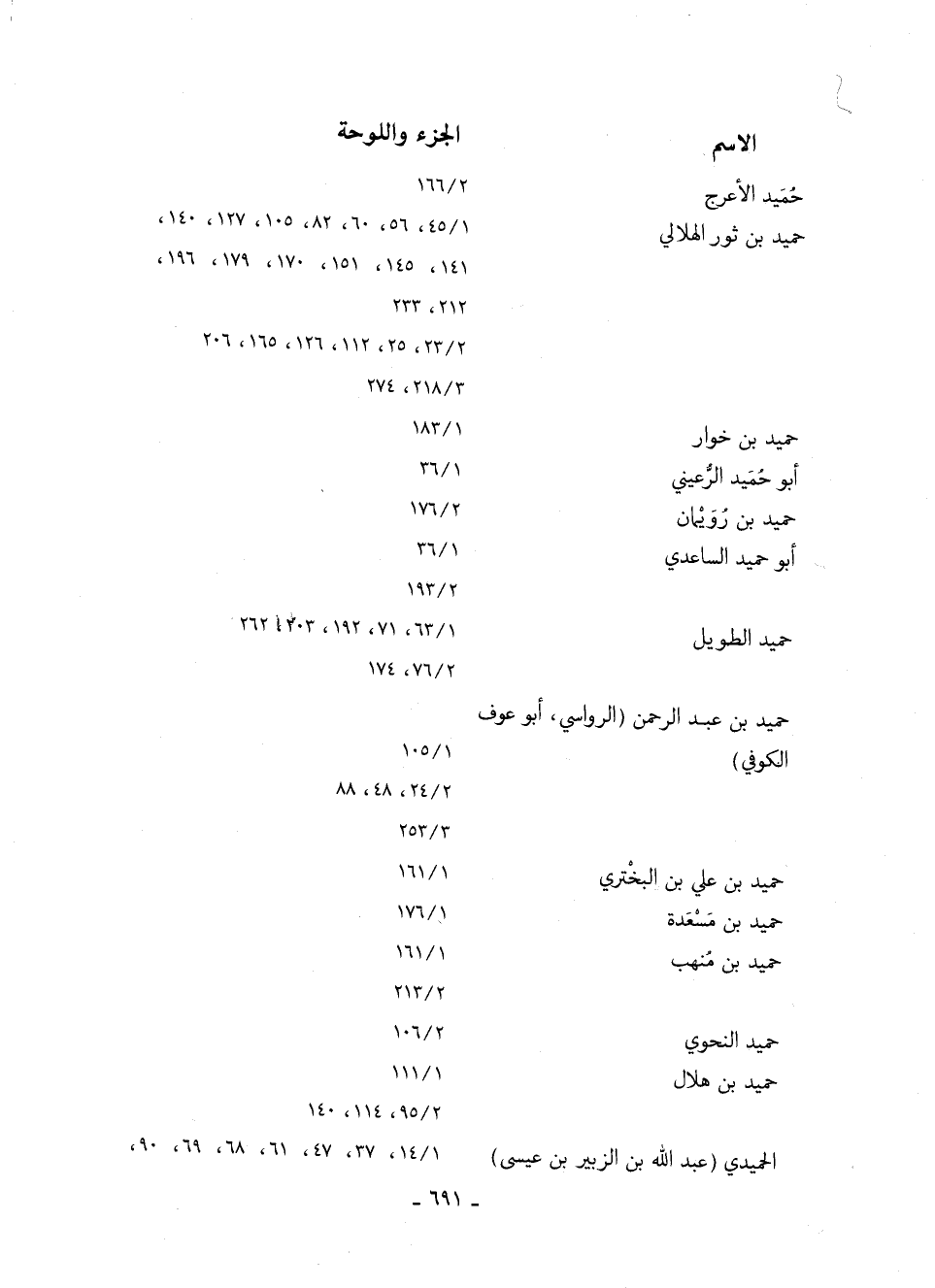 حميد الطويل 63/ 1، 71، 192، 203، 262 76/ 2، 174