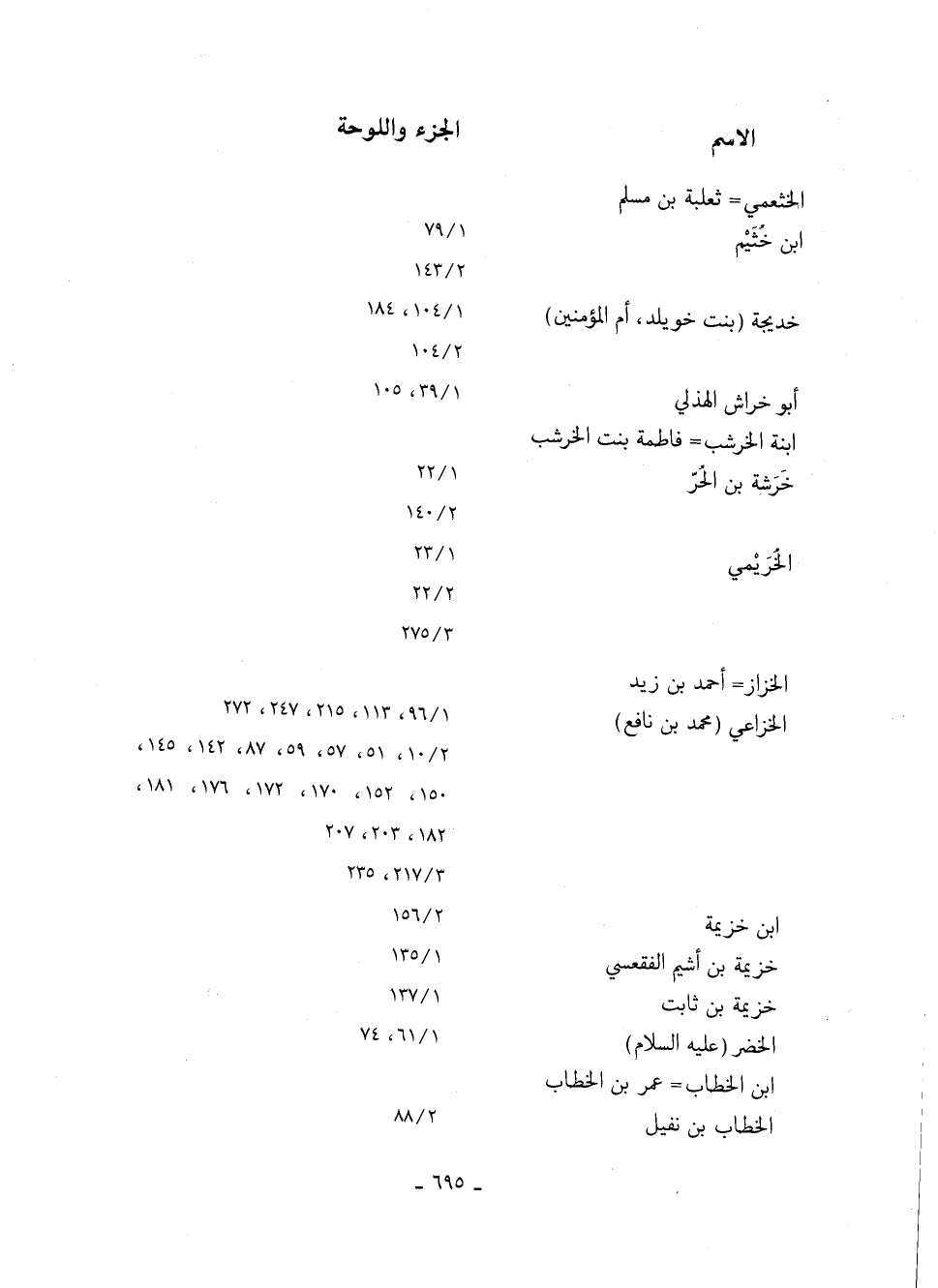الخزاعي "محمد بن نافع" 96/ 1، 113، 215، 247، 272 10/ 2، 51، 57، 59، 87، 142، 145، 150، 152، 170، 172، 176، 181، 182، 203، 207 217/ 3/ 235
