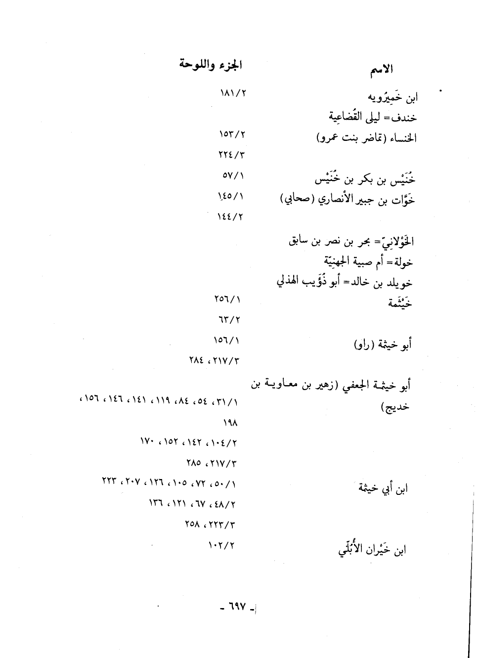 أبو خيثمة الجعفي "زهير بن معاوية بن خديج" 31/ 1، 54، 84، 119، 141، 146، 156، 198 104/ 2، 142، 152، 170 217/ 3، 285