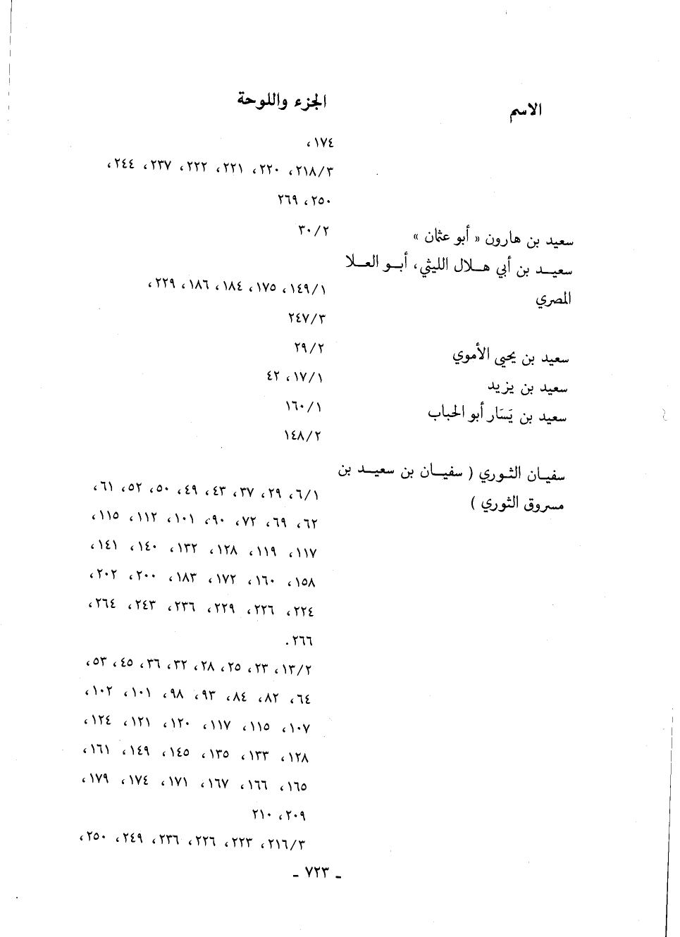 سفيان الثوري, "سفيان بن سعيد بن مسروق الثوري" 6/ 1، 29، 37، 43، 49، 50، 52، 61، 62، 69، 72، 90، 101، 112، 115، 117، 119، 128، 132، 140، 141، 158، 160، 172، 183، 200، 202، 224، 226، 229، 236، 243، 264، 266. 13/ 2، 23، 25، 28، 32، 36، 45، 53، 64، 82، 84، 93، 98، 101، 102، 107، 115، 117، 120، 121، 124، 128، 133، 135، 145، 149، 161، 165، 166، 167، 171، 174، 179، 209، 210 216/ 3، 223، 226، 236، 249، 250،