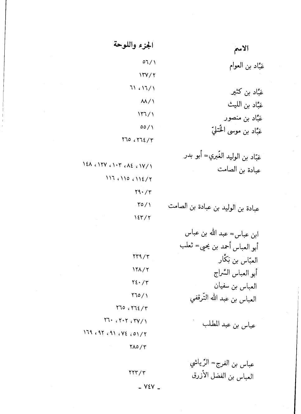 عباس بن عبد المطلب 37/ 1، 202، 260 51/ 2، 74، 91، 92، 169 285/ 3