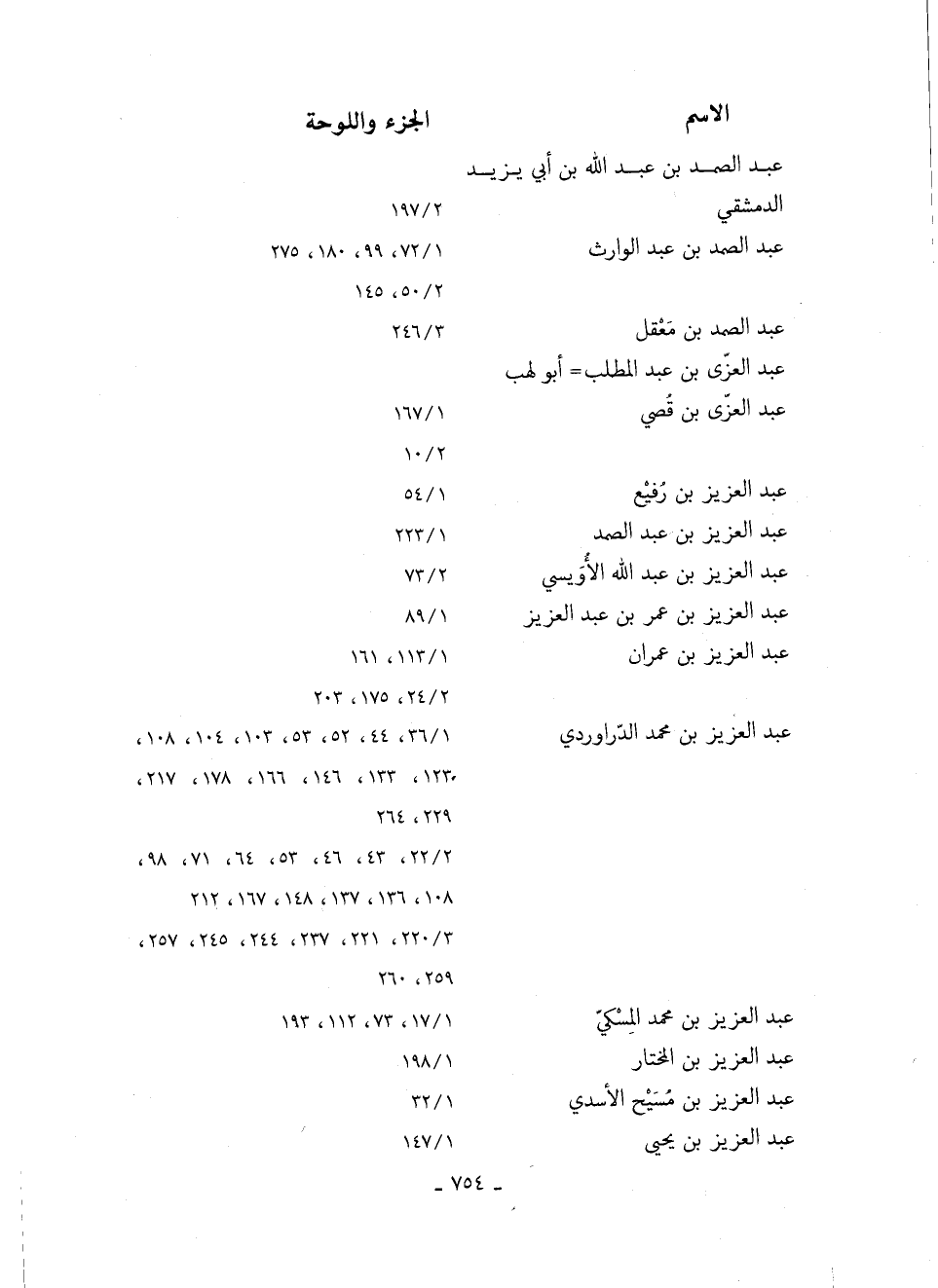 عَبْدُ الْعَزِيزِ بْنُ مُحَمَّدٍ الدَّرَاوُرْدِيُّ 36/ 1، 44، 52، 53، 103، 104، 108، 123، 133، 146، 166، 178، 217، 229، 264 22/ 2، 43، 46، 53، 64، 71، 98، 108، 136، 137، 148، 167، 212 220/ 3، 221، 237، 244، 245، 257، 259، 260
