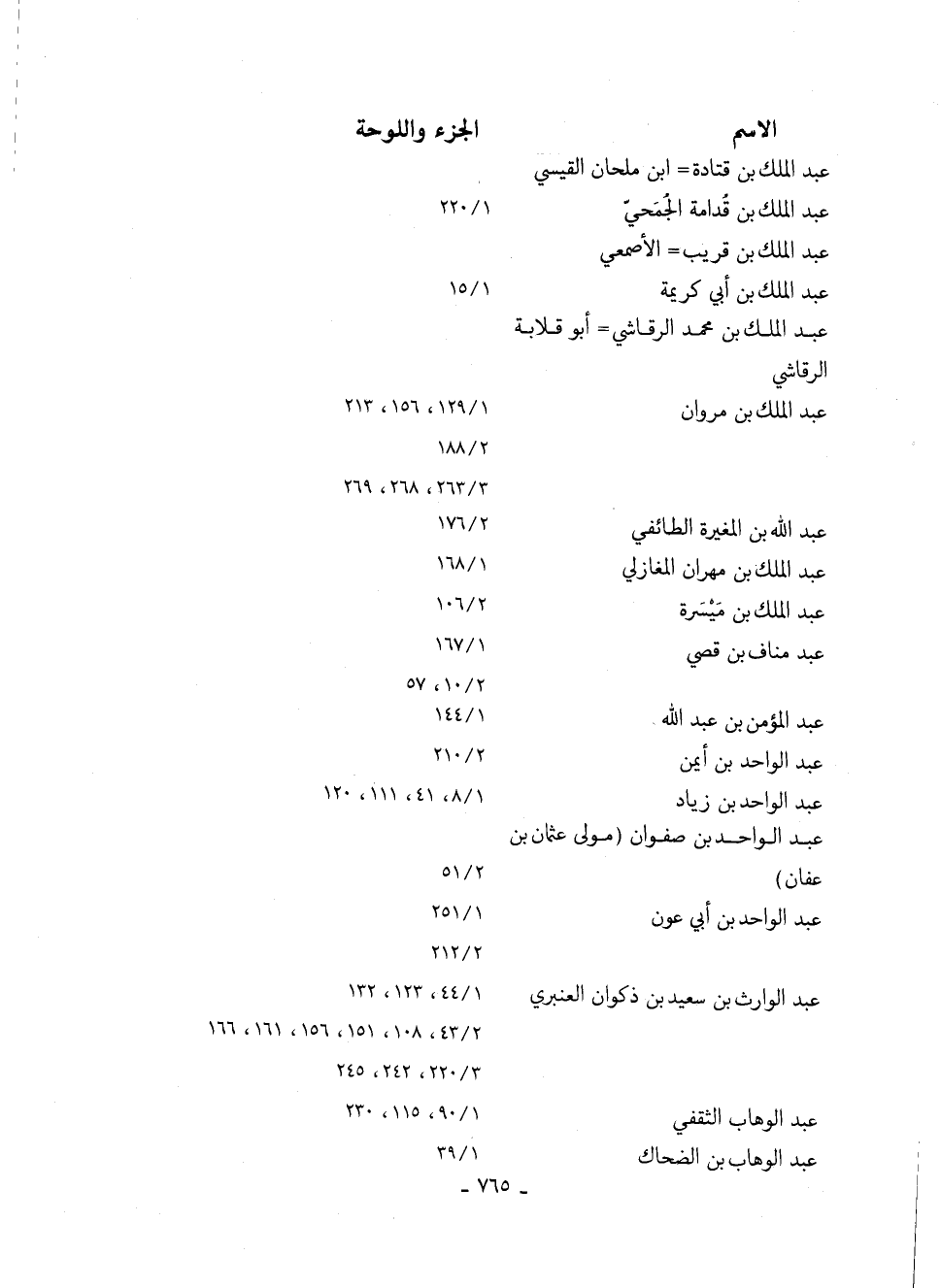 عبد الوارث بن سعيد بن ذكوان العنبري 44/ 1، 123، 132 43/ 2، 108، 151، 156، 161، 166 220/ 3، 242، 245