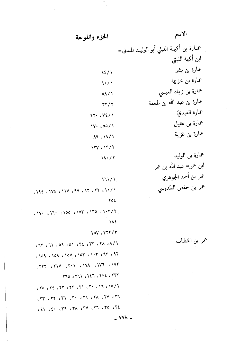 عمر بن حفص السدوسي 11/ 1، 22، 93، 97، 117، 174، 194، 254 103/ 2، 135، 153، 155، 160، 170، 184 222/ 3، 257