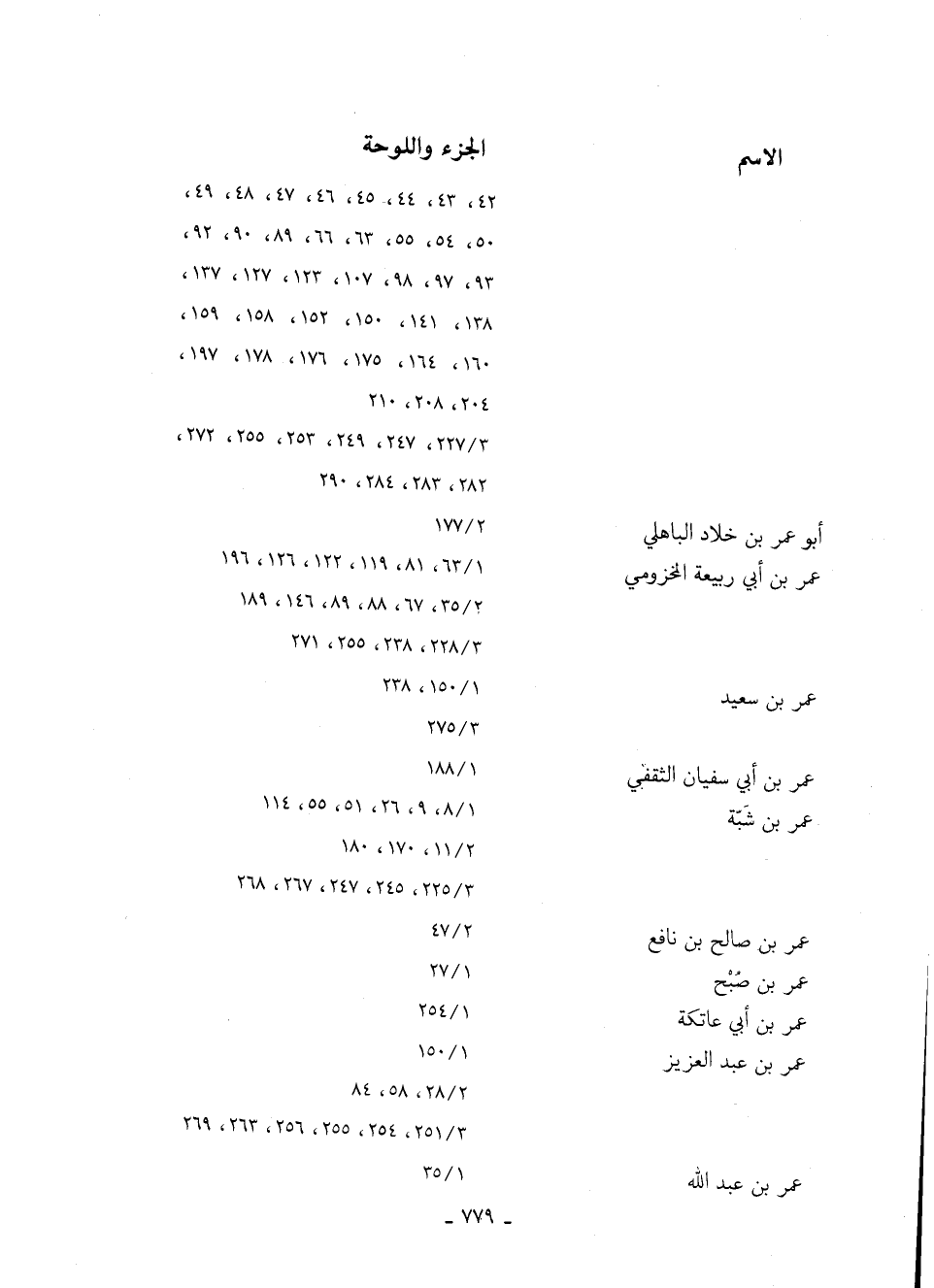 عمر بن عبد العزيز 150/ 1 28/ 2، 58، 84 251/ 3، 254، 255، 256، 263، 269