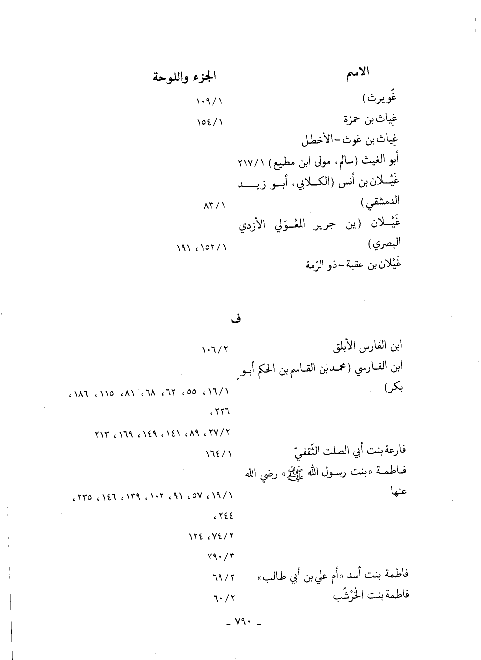 فاطمة "بنت رَسُولُ اللَّهِ صَلَّى اللَّهُ عَلَيْهِ وسلم رضي الله عنها" 19/ 1، 57، 91، 102، 139، 146، 235، 244، 74/ 2، 124 290/ 3