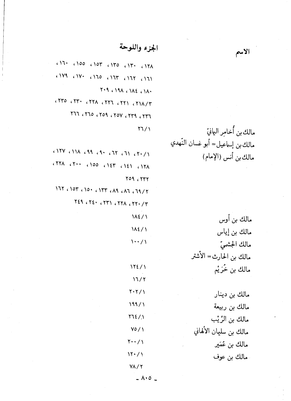 مالك بن أنس "الإمام" 20/ 1، 61، 62، 90، 99، 118، 127، 128، 141، 143، 155، 200، 228، 232، 259 69/ 2، 86، 89، 133، 150، 153، 162 220/ 3، 228، 231، 240، 249