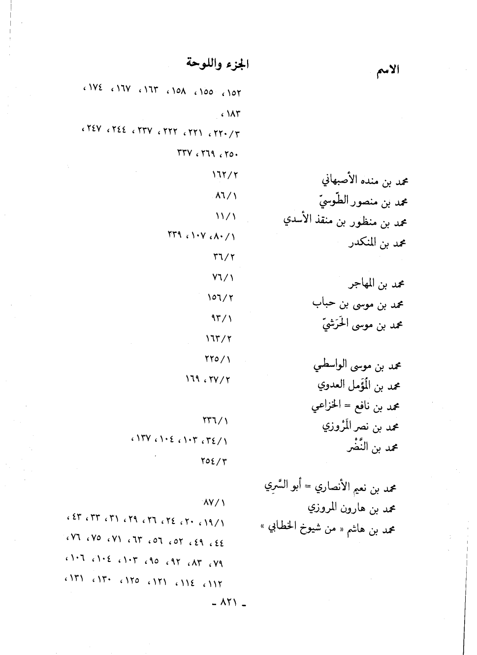 محمد بن هاشم "من شيوخ الخطابي" 19/ 1، 20، 24، 26، 29، 31، 33، 43، 44، 49، 52، 56، 63، 71، 75، 76، 79، 83، 92، 95، 103، 104، 106، 112، 114، 121، 125، 130، 131،