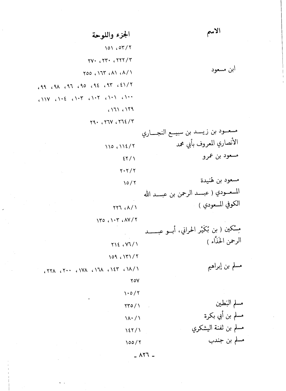 المسعودي "عَبْدِ الرَّحْمَنِ بْنِ عَبْدِ اللَّهِ, الكوفي المسعودي" 8/ 1، 226 87/ 2، 103، 135