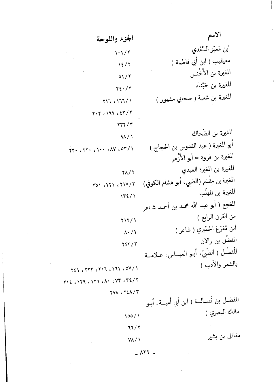 المفضل "الضبي، أبو العباس، علامة بالشعر والأدب" 57/ 1، 161، 216، 222، 241 34/ 2، 73، 80، 126، 129، 214 248/ 3، 278