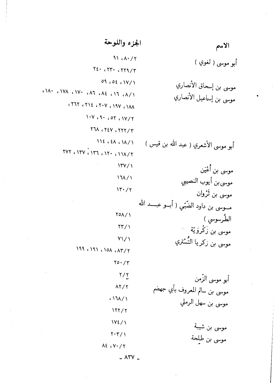 أبو مُوسَى الأَشْعَرِيِّ عَبْدُ اللَّهِ بْنُ قيس 18/ 1، 48، 114 118/ 2، 120، 136، 137، 272