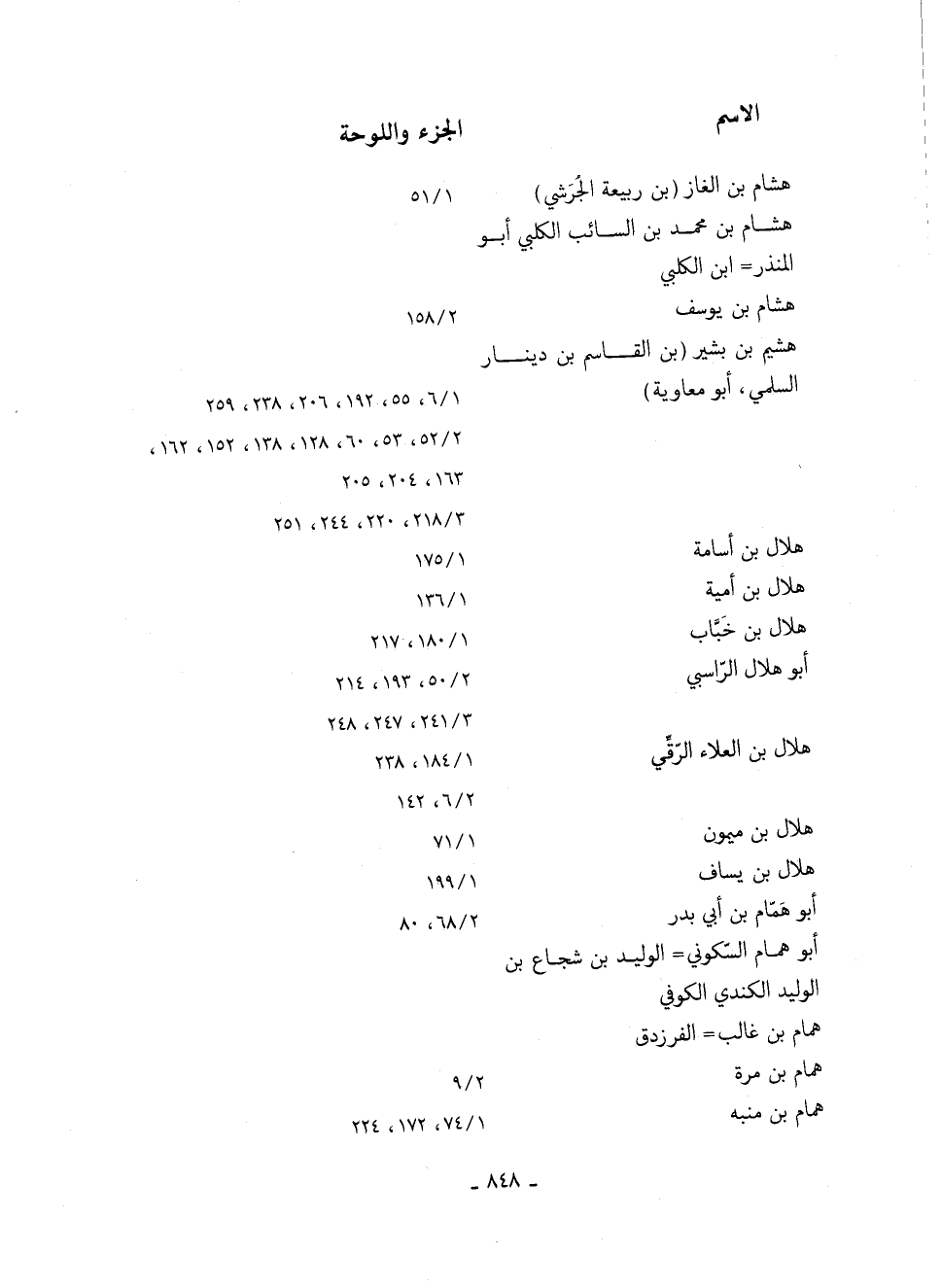 هشيم بن بشير "بن القاسم بن دينار السلمي، أبو معاوية" 6/ 1، 55، 192، 206، 238، 259 52/ 2، 53، 60، 128، 138، 152، 162، 163، 204، 205 218/ 3، 220، 244، 251