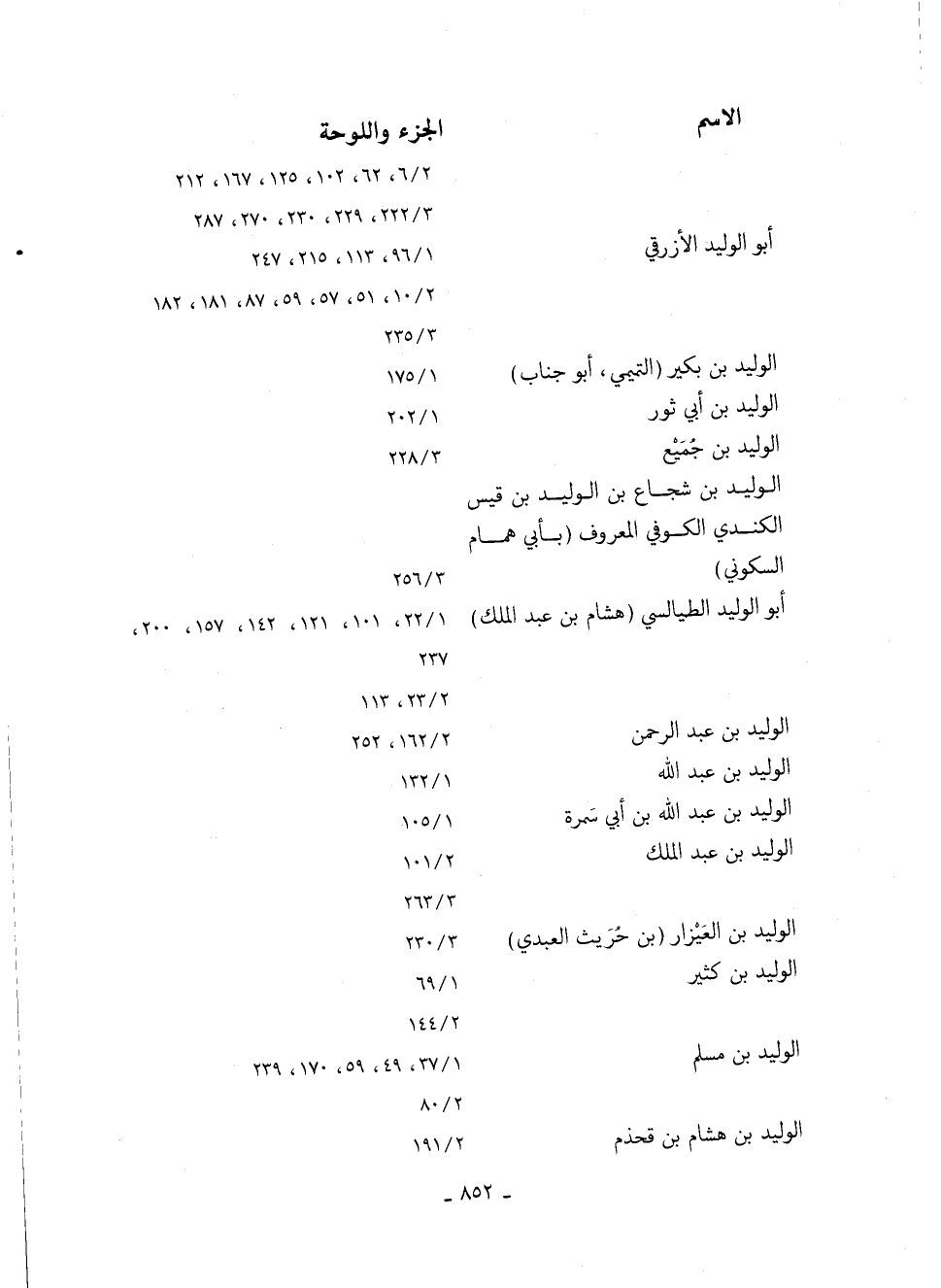 الوليد بن مسلم 37/ 1، 49، 59، 170، 239 80/ 2