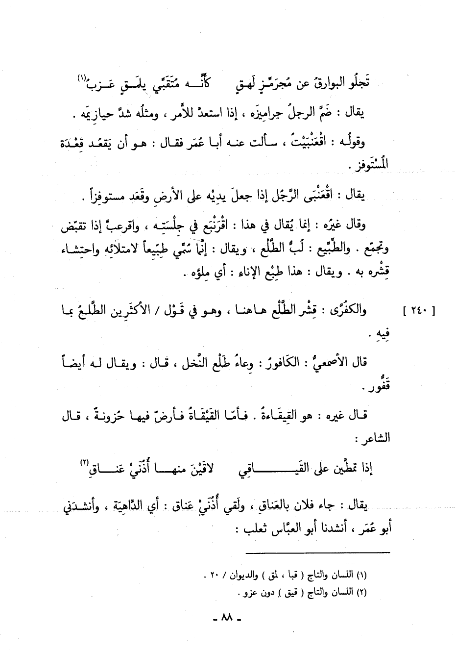 1 اللسان والتاج: "قبا، لمق", والديوان: 20.