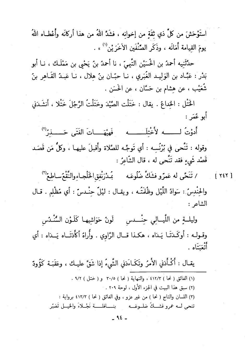 1 الفائق: "نحا": 412/ 3، والنهاية: "نحا": 30/ 5, و "ختل": 9/ 2.