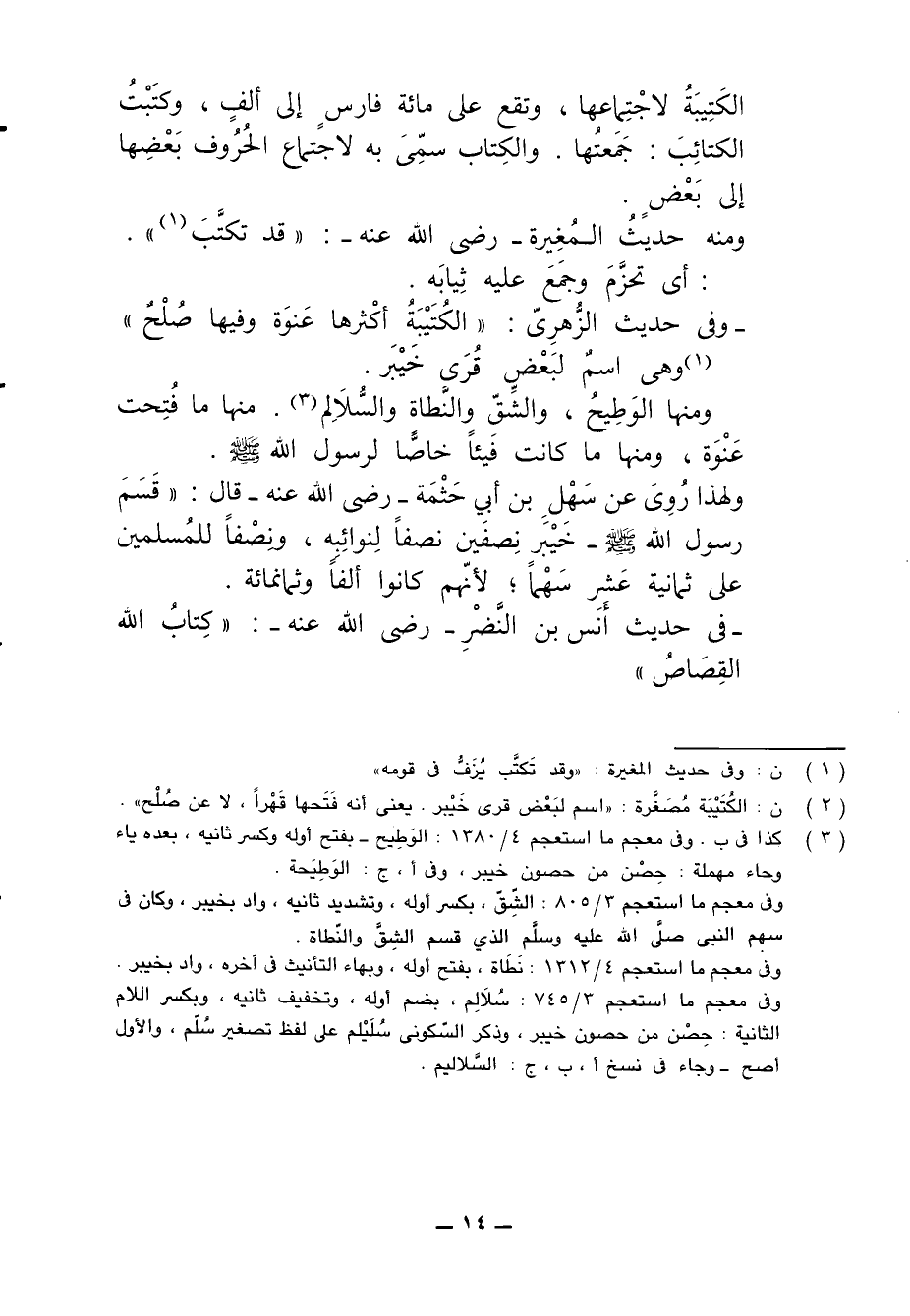 (¬2) ن: الكُتَيْبة مُصَغَّرة: "اسم لبَعْض قرى خَيْبر. يعني أنه فَتَحها قَهْراً، لا عن صُلْح".