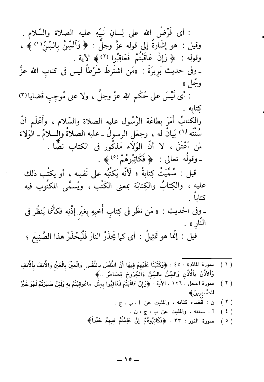 والكتابُ أَمَرَ بطاعَة الرَّسُول عليه الصلاة والسّلام، وأَعْلَم أنّ سُنَّتَه (¬4) بَيانٌ له، وجعَل الرسولُ - عليه الصلاةُ والسلامُ - الوَلاءَ لمن أعْتقَ، لا أنّ الوَلاء مَذكُور في الكتاب نصًّا.