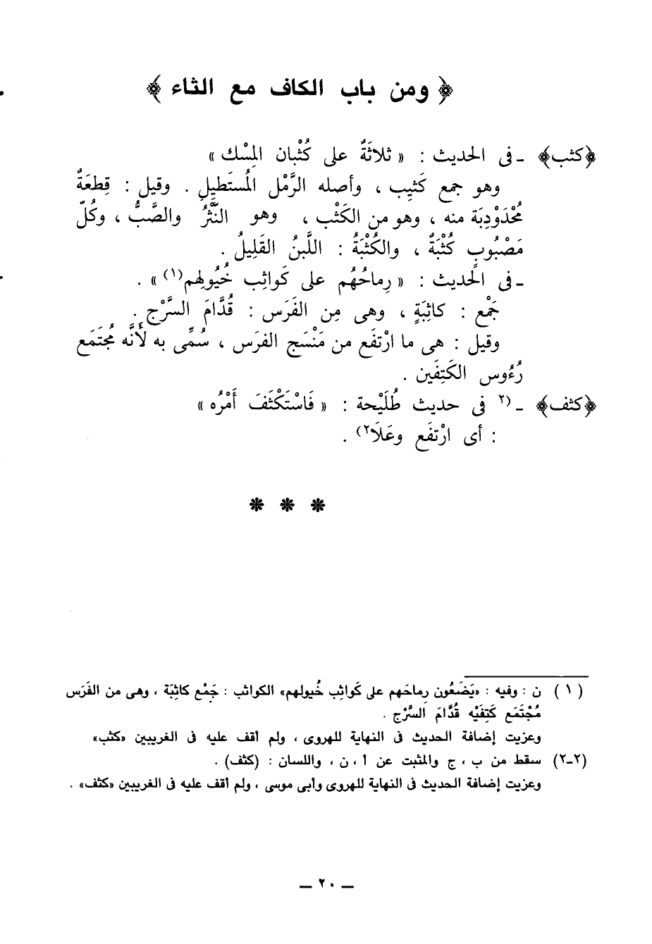 وعزيت إضافة الحديث في النهاية للهروى وأبى موسى، ولم أقف عليه في الغريبين "كثف".